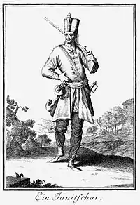 Ifølge historikeren Patrick Kinross, havde den daværende sultan Mahmud II bevidst tilskyndet janitsharerne til at gøre oprør som et led i sultanens "kup imod janitsharerne". Sultanen informerede dem igennem en fatwa, at han var i færd med at skabe en ny hær, organiseret og trænet i overensstemmelse med europæiske standarder. Som forventet gjorde janitsharerne derefter mytteri og avancerede mod sultanens palads. I den følgende kamp gik der ild i janitsharernes barakker på grund af artilleriets skudangreb. Dette resulterede i at 4.000(-8.000[27]) janitsharer blev dræbt. De overlevende blev enten fordrevet eller henrettet og deres ejendele blev konfiskeret af sultanen. Denne begivenhed kaldes Vaka-i Hayriye (Den Lykkevarslende Hændelse).[28]