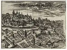 Klosterkomplekset ligger ved siden af slotsparken. Piaristklosteret blev grundlagt i 1644. Det tidlige barokkompleks omfatter Bebudelseskirken fra 1666–1673, Sankt Annes begravelseskapel fra 1644, Sankt Florians kapel fra 1692–1693 og Jomfru Mariakapellet af Einsiedeln fra 1709–1710. Der er forskellige udstillinger i kirken og kapellerne, klosterbygningen er lukket for offentligheden.[11]