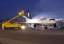 Billede af et fly, der de-ices Arkiveret 30. maj 2010 hos Wayback Machine