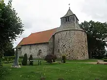 Kirken er opført som rundtårnkirke i kampesten i 1100-tallet. Det antages, at kirken blev anvendt både som kirke og tilflugtssted. Der er altså tale om en forsvarskirke.