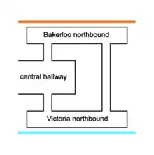 Cross-platform interchange mellem Bakerloo og Victoria lines blev skabt ved at konstruere Victoria line-perronerne parallelt med Bakerloo line-perronerne. Med de supplerende rulletrapper blev det muligt at ensrette tunnellerne, og de resterende elevatorer kunne fjernes.