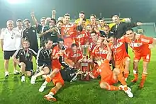 Spillere fra PFC Litex Lovetj fejrer sejren i den bulgarske Supercup 2010