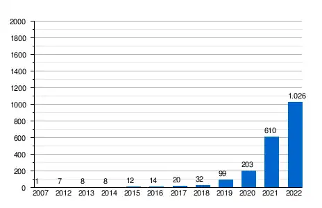 Antallet af danske padelbaner steg ifølge Dansk Padel Forbund kraftigt fra 32 i 2018 til over 1.000 baner i 2022.[15]