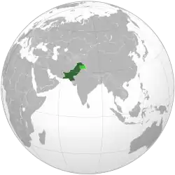 Pakistan, officielt Den Islamiske Republik Pakistan (urdu: اسلامی جمہوریۂ پاکستان; tr. islāmī jamhūriya-i-pākistān), er et land i Sydasien. Det er verdens femte mest befolkede land med over 230.592.582 indbyggere.[3] Derudover er det verdens 30. største land med et areal på 881.913 km2. Pakistan har 1.046 km kystlinje, som går ud til Det Arabiske Hav og Omanbugten mod syd, og det grænser op til Indien mod øst, Afghanistan mod vest, Iran mod sydvest og Kina mod nordøst. Wakhan-korridoren i Afghanistan gør, at der lige akkurat ikke har grænse til Tajikistan mod nordvest. Landet har en havgrænse til Oman.