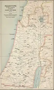 Under det romerske herredømme regeredes Palæstina på skiftende måde. Det deltes nu i følgende landsdele: vest for Jordan Judæa (med Idumæa), Samaria og Galilæa; øst for Jordan Peraea (fra Arnon til Pella), Gaulanitis (øst for Genesaret sø), Batanaea, Trachonitis og Auranitis. Dertil kom en række rent hellenistiske stæder i Østjordan, som dannede en sammenslutning, Dekapolis.