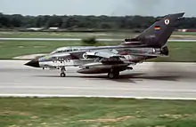 ![]() RAF IDS Tornado med vingerne 45° tilbage.  | |