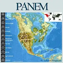 Panem ligger i den tempererede del af Nordamerika med hovedstaden Capitol i midten af Rocky Mountains. Panem ligger sikkert omkring de amerikanske stater Oregon og Idaho med distrikter i andre tænkelige stater som Washington, Montana og Nevada.