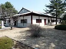Bygningen, hvor aftalen blev underskrevet, står fortsat der, hvor den blev bygget, lige nord for grænselinjen, som går midt i den demilitariserede zone.
