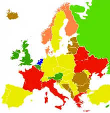 Ikke OK. OK for bygninger; ja for (andre) kunstværker kun for ikke-kommerciel anvendelse. OK for bygninger og (andre) kunstværker, men kun for ikke-kommerciel anvendelse. OK for bygninger og (andre) kunstværker, også for kommerciel anvendelse. OK for bygninger og (andre) kunstværker – også i det offentlige rum indendørs – med med begrænsninger. OK for bygninger og (andre) kunstværker – også i det offentlig rum indendørs – men kun for ikke-kommerciel anvendelse. OK for bygninger og (andre) kunstværker – også i det offentlige rum indendørs og også for kommerciel anvendelse. Ukendt – gælder Andorra, San Marino og Monaco.