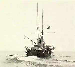Panserskonnerten Esbern Snare som torpedoskib i 1883. Fra Søværnets Arkiv