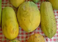 Papajakødet er blødt og saftigt. Det varierer i farven fra orange til dyb rød. I midten er der et hulrum med frø, der fjernes, ganske som med en melon.