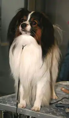 Papilloner er kendt for deres store, sommerfugle-agtige ører. De er hvide med aftegninger i alle slags farver. Helt hvide eller helt farvede hunde er ikke tilladt og diskvalificeres på hundeudstillinger.