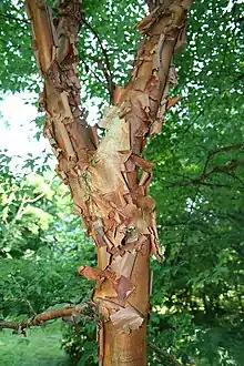 ![]() Papirbarkløn har en kanelfarvet, papiragtig bark. | |
