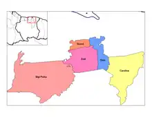 Kort over Surinam. Para-distriktet er fremhævet med rødt.