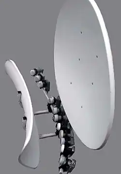 Antennerne bruges også i telekommunikation i såkaldte punkt-til-punkt radiolinjesystemer, selv om reflektoren her som regel er skjult bag et dæksel, så den ikke ser parabolformet ud.