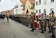 Parade 6. juli 2014 i Fredericia foran Krigergravene ved Trinitatis Kirke i anledning af årsdagen for Udfaldet fra Fredericia.