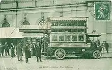 I 1902 havde Paris et begyndende system af undergrundsbaner – metroen, og over jorden var der talrige sporvognslinjer foruden 42 hestetrukne omnibuslinjer, som dannede et rutenet på 280 kilometer. Vognparken bestod af 684 vogne, hvortil der var opført 25 garager, og man rådede over 11.572 heste. På hver vogn var der foruden en kusk også en konduktør, som passagererne betalte rejsens pris til. Der blev ikke udstedt billet, medmindre der var tale om en rejse, hvor der skulle skiftes linje. 130 millioner rejsende benyttede dette år omnibusserne, mens sporvognene transporterede 600 millioner.[4]