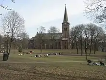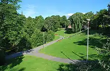 - i Dronningparken (sydvestlige del af Slottsparken), som engang var bymarkgrunden Sommerro