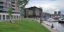 Siden idékonkurrencen "Byen og fjorden – Oslo år 2000", som Selskabet for Oslo Byes Vel gennemførte i 1982, har det været meget diskuteret, hvordan byen skal udvikle sig mod havnefronten, efter at skibsværft og havn trækker sig tilbage fra centrum. Aker Brygge blev anlagt midt i 1980'erne uden park.