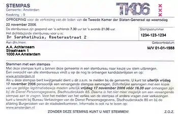 Kiesdeler-grænsen kom i 2006 til at ligge ved 65.591 stemmer og grænsen for valg ved personlige stemmer (Voorkeurstemmen ) dermed ved 16.397 stemmer (25%). Siden valget i 1971 har det været frivilligt at afgive sin stemme, og valgdeltagelsen nåede 80,35% og var dermed højere end i 2003. Højeste valgdeltagelse nåedes på øen Schiermonnikoog med 94,23%.