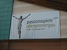 Plakat med reklame for passionsspillet i Oberammergau i 2010.