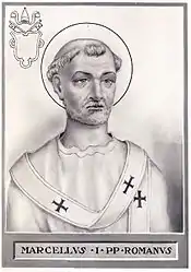 Pave Marcellus 1. (død 309) efterfulgte pave Marcellinus 1. efter et betydeligt stykke tid, mest sandsynligt i maj eller juni 308. Under Maxentius blev han forvist fra Rom i 309 på baggrund af den tumult, der udbrød som følge af de strenge straffe, som han gav de kristne, der var faldet fra under de seneste forfølgelser. Han døde samme år og blev efterfulgt af pave Eusebius 1. Hans relikvier befinder sig under alteret i San Marcello al Corso i Rom. Hans navnedag er 16. januar.