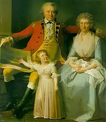 Peder Anker med sin datter Karen og sin hustru Anna Elisabeth malet af Jens Juel i 1792