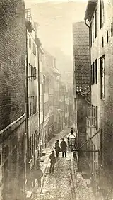 Peder Madsens Gang var urørt af de to storbrande, der i 1700-tallet lagde store dele af det gamle København øde. Derfor var den oprindelige boligmasse endnu intakt ved nedrivningen i 1870’erne. Solens stråler nåede aldrig ned i den smalle gyde eller dens skaktlignende baggårde.[7]