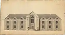 Genopførelsen af Sorø Akademi efter branden i 1813 blev fuldført i 1828. Her har Peder Maling ikke taget hensyn til de pavilloner, der blev reddet, resterne af Akademiets anden bygning, men i stedet valgt en simpel, lidt almindelig paladsstil. Uden at være noget betydeligt værk virker bygningen dog gennemført ved sin store, hvide facade mellem de frodige, grønne træer.
