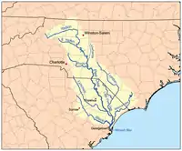 Floden er ca. 370 km lang eksklusiv de 320 km, som udgøres af Yadkin River.[1]