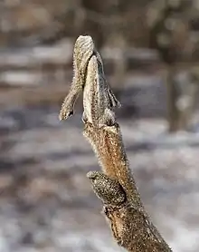 ![]() Pekan (Carya illinoinensis) med frugter og løv. Foto: Brad Haire | |