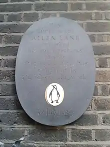 Mindeplade til ære for Allen Lane