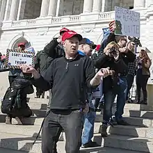 Tilhængere af Donald Trump og Mike Pence demonstrerer med Pepe-skilt