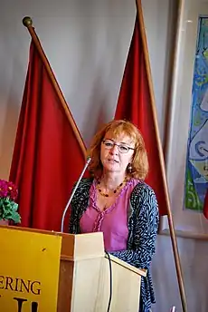 ![]() Pernille Frahm taler til 3F Industris 1. maj-arrangement i Glostrup 2011. | |