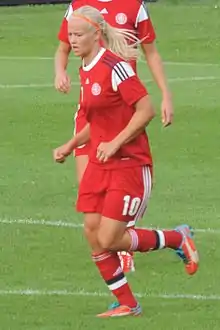 Den 16. september 2021 scorede hun i en VM-kvalifikationskamp mod Malta sit 66. landskampsmål i på dette tidspunkt 129 landskampe,[22] og blev dermed alletiders mest scorende danske landsholdsspiller (blandt både mænd og kvinder).[23]
