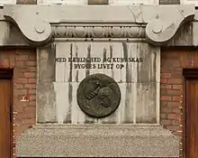 Plakette ved indgangen til Læssøesgades Skole med billede af Demeter og Persefone.