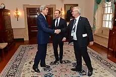 ![]() Taksøe-Jensen hilser på John Kerry (2015) | |