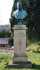 Han er begravet på Viborg Kirkegård. Der er rejst et monument for Heiberg ved Viborg Sygehus med en buste af Harald Quistgaard, udført 1923.