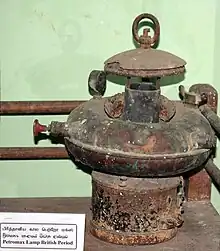 En Petromax lanterne fra den britiske kolonial tid, på Batticaloa Museum.