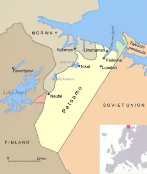 Området blev besat af tyske tropper med udgangspunkt i Kirkenes under Operation Barbarossa og var under tysk okkupation, indtil de tyske tropper i 1944 blev trængt tilbage af den Røde Hær. Området blev formelt afstået til Sovjetunionen indenfor Paris Fredsaftalen i 1947.