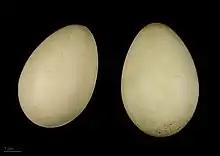 Den bygger sin dunpolstrede rede på jorden, beskyttet af et tæt bunddække af vandplanter. Hunnen lægger normalt seks til ti æg, som har en længde på ca. 5 cm. Yngleperioden varer ca. 22 dage. I hele perioden holder hannen sig i nærheden af reden. Efter ca. 25 dage er æggene udruget. Kort efter at ællingerne er klækket, forlader de reden og følger moderfuglen ud i vandet. Efter ca. 45 dage er ællingerne flyvefærdige.