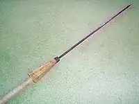 Spyddet havde et blødt stykke jern bag spidsen, så det bøjede når det ramte sit mål. Dette gjorde det umuligt at kaste spyddet tilbage og hvis spyddet havde sat sig fast i et skjold, måtte fjenden smide skjoldet fra sig, hvis han ville rykke frem.