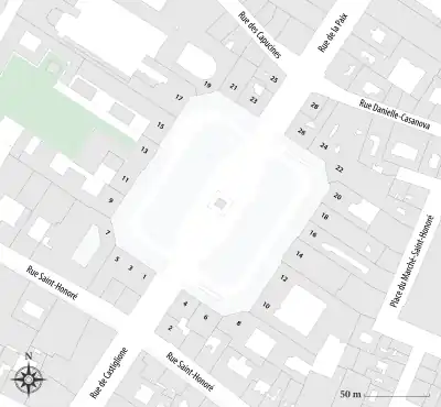 I det nordvestlige hjørne af pladsen ligger luksushotellet Hôtel Ritz Paris.