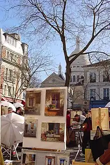 Place du Tertre med Sacré Coeur i baggrunden. Retoucheret er teksten no photo over billederne.