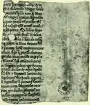 Pergamentarket måler ca. 15 x 13 cm og har tekst på begge sider.