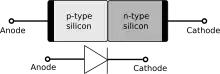 | Si, Silicium | 0,7 | Ensretterdioder. F.eks. OY101(aksialt hus med gevind)[4][8], 1N4007, 1N4148, 1N4448, BY227 | |