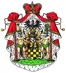 Slægten førte et tværdelt våbenskjold med et gult 1. felt med en halv kronet sort ørn og et 2. felt med skaktavl af sort og gult.