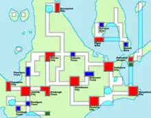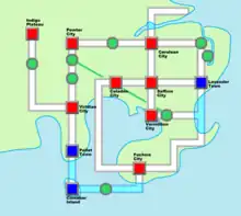 - Slateport City: En havneby kendt for dets marked, museum og Contest Hall. Den er baseret på Nagasaki.