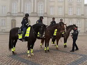 I Danmark udgør dansk politi knap 10.570 betjente,[1] fordelt i 12 politkredse ud over Grønland og Færøerne, der er selvstændige politikredse. Hver politikreds ledes af en politidirektør. Justitsministeren er den øverste leder af politiet og udøver sin beføjelse gennem rigspolitichefen og politidirektørerne.