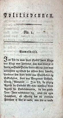 Allerede de første numre indeholdt en artikel "Om Politiets Rettighed til Uddeling af Stokkeprygl i Tilfælde af Opløb", der, støttende sig på citater af Immanuel Kant og Johann Gottlieb Fichte, benægtede politiets ret til at uddele slag på en urolig folkemængde.